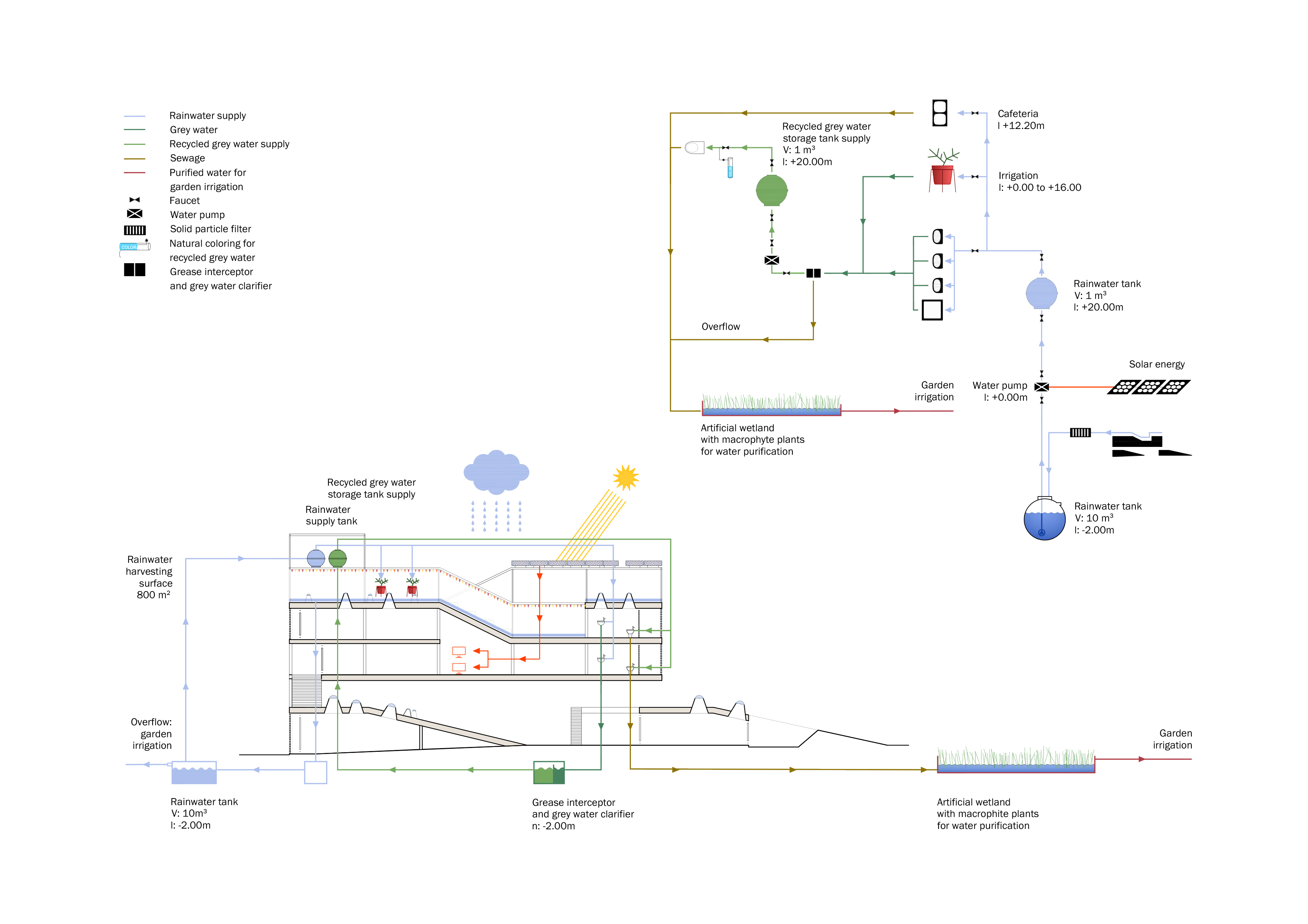 microgeneration and wetlands with macrophyte plants for sewage purification. The