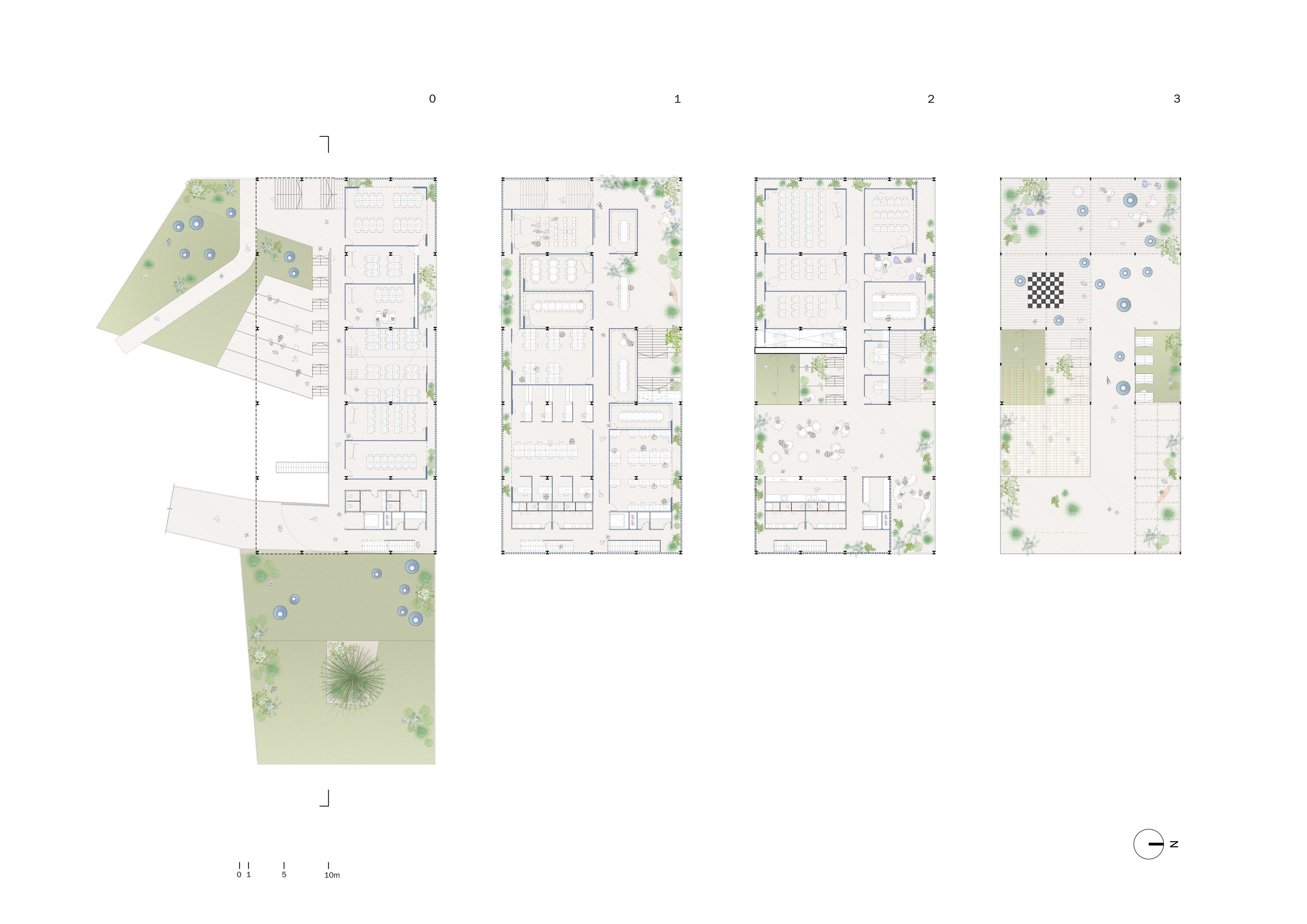 campus buildings could be structured by the same system of interconnected